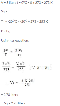 A gas occupies 3 litres at 0°C. What volume will it occupy at -20°C, pressure remaining constant?