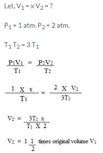 Calculate the final volume of a gas ‘X’ if the original pressure of the gas at STP is doubled and its temperature is increased three times.