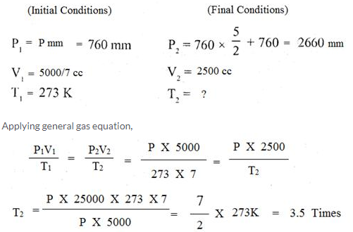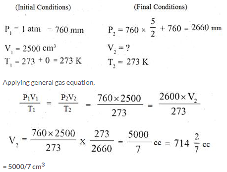 2500 cm3 of hydrogen is taken at STP. The pressure of this gas is further increased by two and a half times (temperature remaining constant). What volume will hydrogen occupy now?