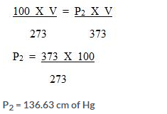 A given amount of gas A is confined in a chamber of constant volume. When the chamber is immersed in a bath of melting ice, the pressure of the gas is 100 cmHg.