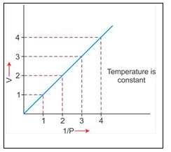 According to Boyle’s law, at constant temperature, pressure of a fixed amount of gas varies inversely to its volume. The graph of pressure verses 1/V shows a positive slope.