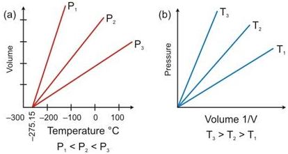 According to kinetic theory of matter, the average kinetic energy of the gas molecules is directly proportional to the absolute temperature. Thus, when the temperature of a gas is increased, the molecules would move faster and the molecules will strike the unit area of the walls of the container more frequently and vigorously. If the pressure is kept constant, the volume increases proportionately. Hence, at constant pressure, the volume of a given mass of a gas is directly proportional to the temperature (Charles’ law).