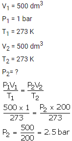 What will be the minimum pressure required to compress 500 dm3 of air at 1 bar to 200 dm3 temperature remaining constant.