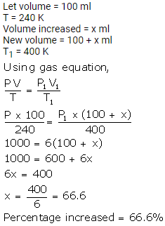 A gas at 240 K is heated to 127°C. Find the percentage change in the volume of the gas (pressure remaining constant).