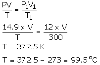 An LPG cylinder can withstand a pressure of 14.9 atmosphere. The pressure gauge of the cylinder indicates 12 atmosphere at 27°C. Because of a sudden fire in the building, the temperature rises. At what temperature will the cylinder explode?