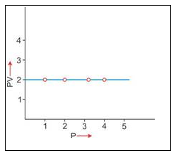 3. PV vs P : Variation in PV plotted against pressure (P) at a constant temperature, a straight line parallel to X-axis is obtained.