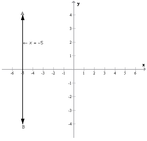 The graph x= -5 in the following figure is a straight line AB which is parallel to y axis at a distance of 5 units from it in the negative x direction.