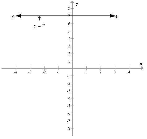 The graph y = 7 in the following figure is a straight line AB which is parallel to x axis at a distance of 7 units from it.