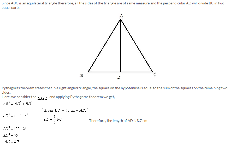 Selina Concise Mathematics Class 9 ICSE Solutions Pythagoras Theorem [Proof and Simple Applications with Converse]