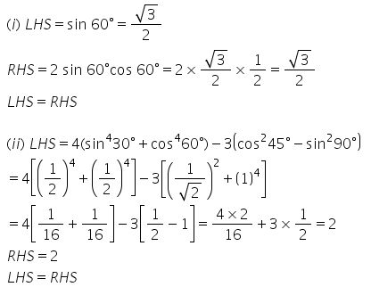Selina Concise Mathematics Class 9 ICSE Solutions Trigonometrical Ratios of Standard Angles [Including Evaluation of an Expression Involving Trigonometric Ratios]