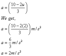 Here, u = 20 m/s, t = 50 s and a = -0.4 m/s2
