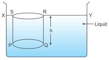 Consider a vessel containing a liquid of density ρ. Let the liquid be stationary. In order to calculate pressure at a depth, consider a horizontal circular surface PQ of area A at a depth h below the free surface XY of the liquid. The pressure on the surface PQ will be due to the thrust of the liquid contained in cylinder PQRS of height h with PQ as its base and top face RS lying on the frees surface XY of the liquid.