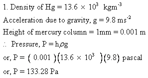 1 atmosphere = 0.76 m of Hg = 1.013 x 105 pascal