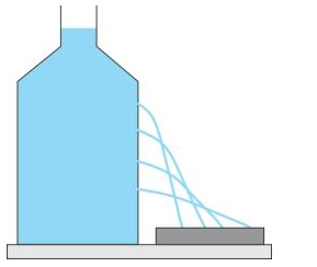 Take a can or large plastic bottle filled with water. Place it on a horizontal surface. Make a series of holes in the wall of the vessel anywhere below the free surface of the liquid. The water spurts out through each hole. This shows that the liquid exerts pressure at each point on the wall of the bottle.