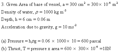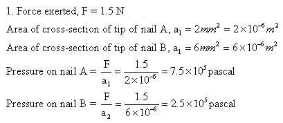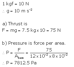 Example: If we stand on loose sand, our feet sink into the sand, but if we lie on that sand, our body does not sink into the sand. In both the cases, the thrust exerted on the sand is equal (equal to the weight of the body). However, when we lie on sand, the thrust acts on a large area and when we stand, the same thrust acts on a small area.