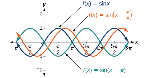 Notice: These graphs change horizontal “width” but do not change height. The two red graphs only show us a portion (in this example “half”) of the original graphs in their 0 to windows. We would need to “stretch” the domain window to to see entire cycles of those two graphs. Whereas the two blue graphs show us two complete cycles of the graphs in their 0 to windows, which would allow us to “shrink” the domain window and still see complete cycles of the graphs.