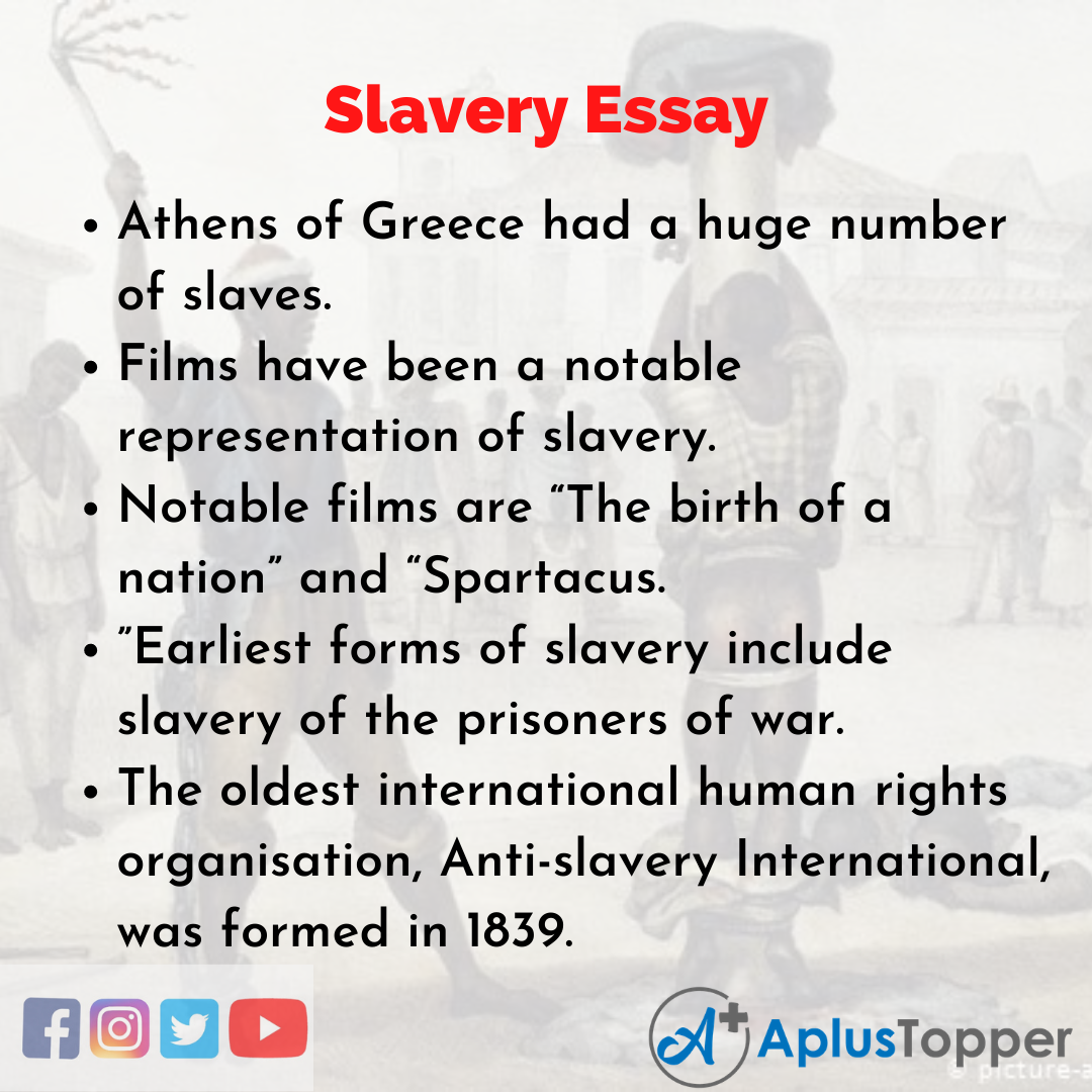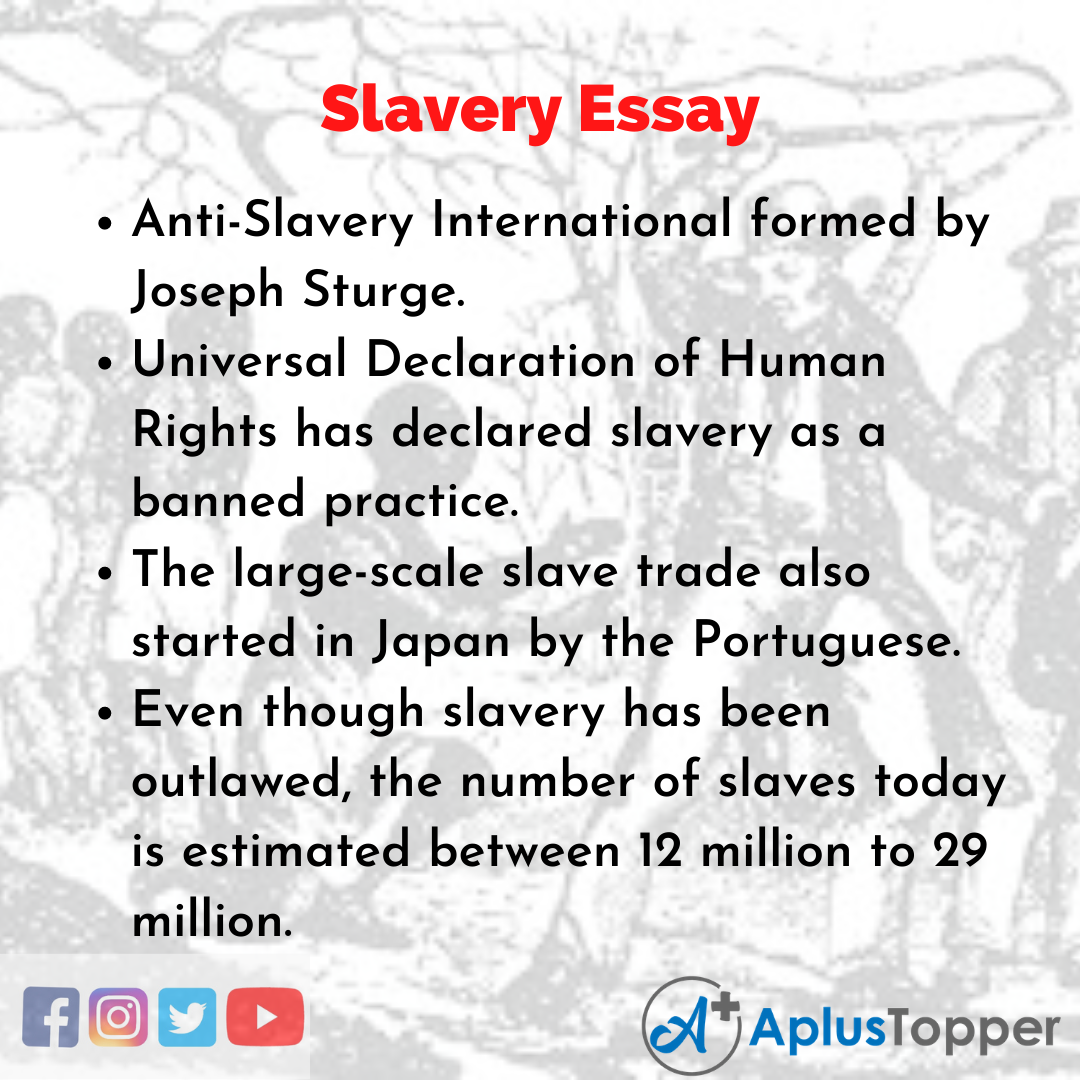 Short Essay on Slavery is usually given to classes 1, 2, 3, 4, 5, and 6.