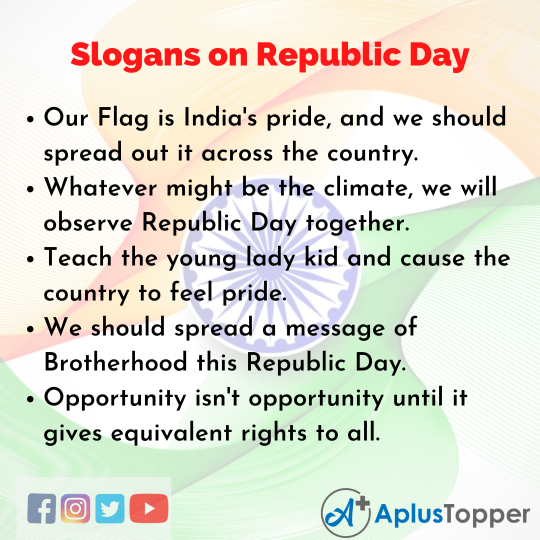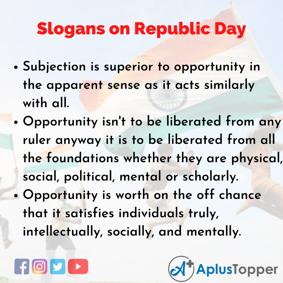 The following are fifteen slogans dedicated to spreading awareness about Republic Day and its effects on people. These slogans are adequate to impact society positively. You can use these slogans on special days like Republic day, Independence Day or any other patriotic day.