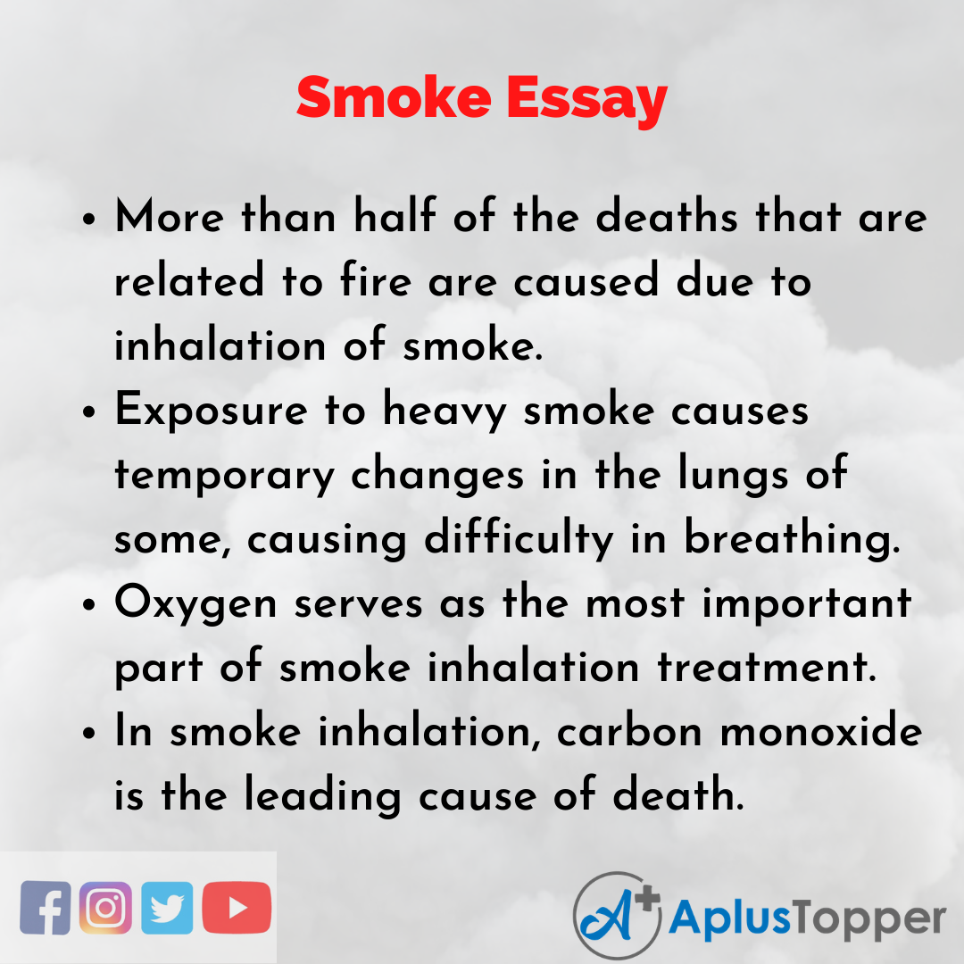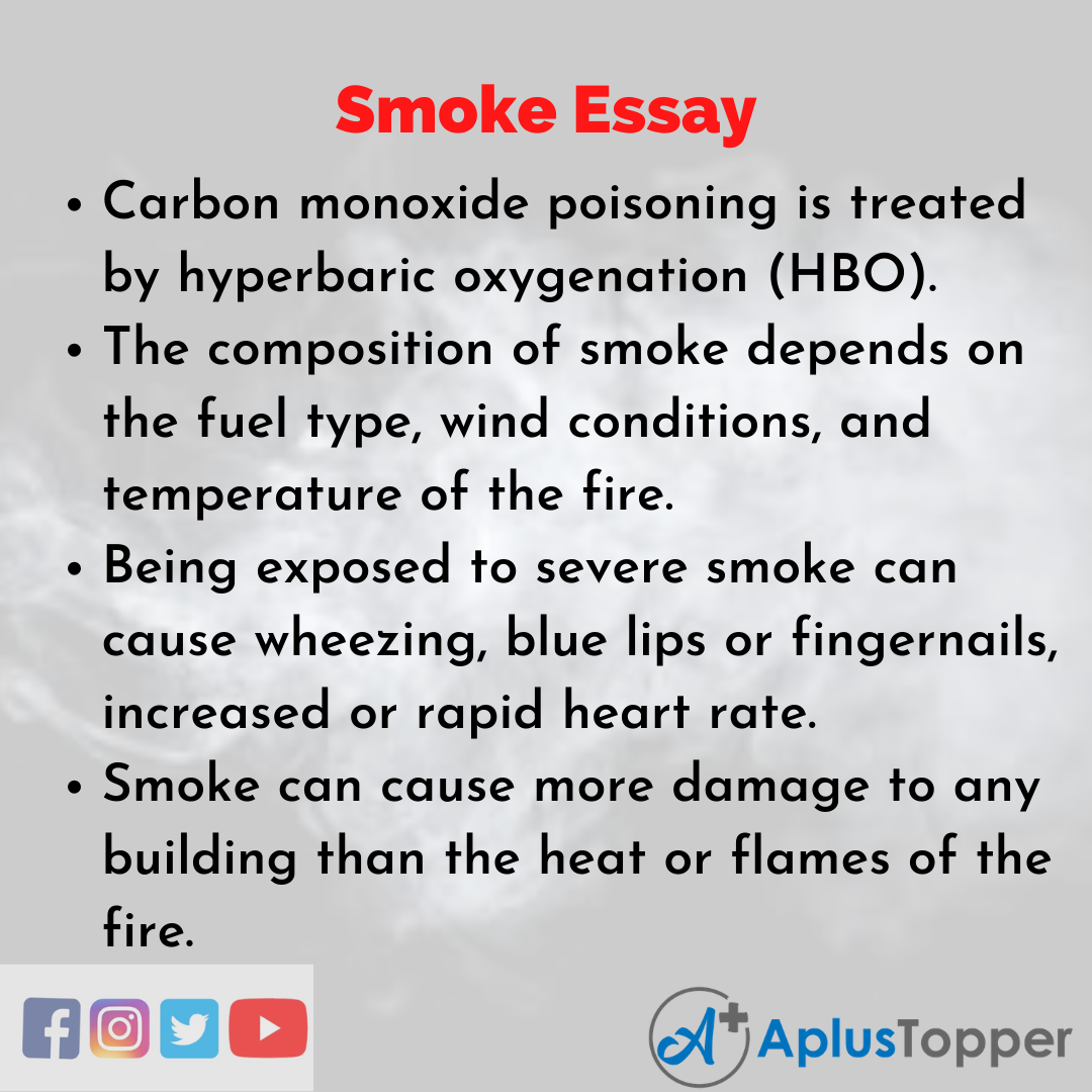 Short Essay on Smoke is usually given to classes 1, 2, 3, 4, 5, and 6.