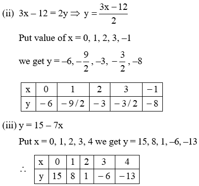 (i) 2x + 3y = 6 (ii) 3x – 2y = 12 (iii) 7x + y = 15