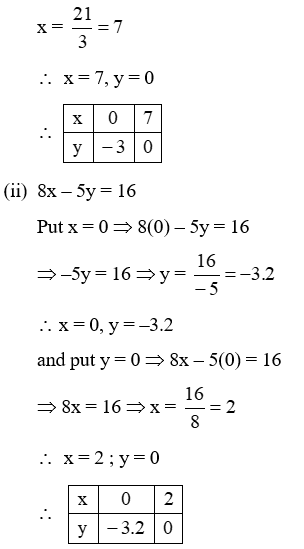 (i) 3x – 7y = 21 (ii) 8x – 5y = 16