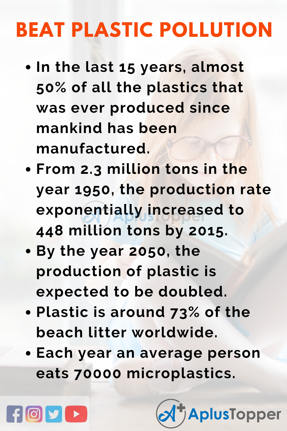 - By the year 2050, the production of plastic is expected to be doubled.