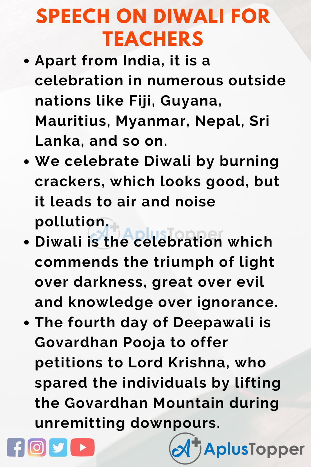Long and Short Speeches on Diwali for Teachers in English for Students and Kids