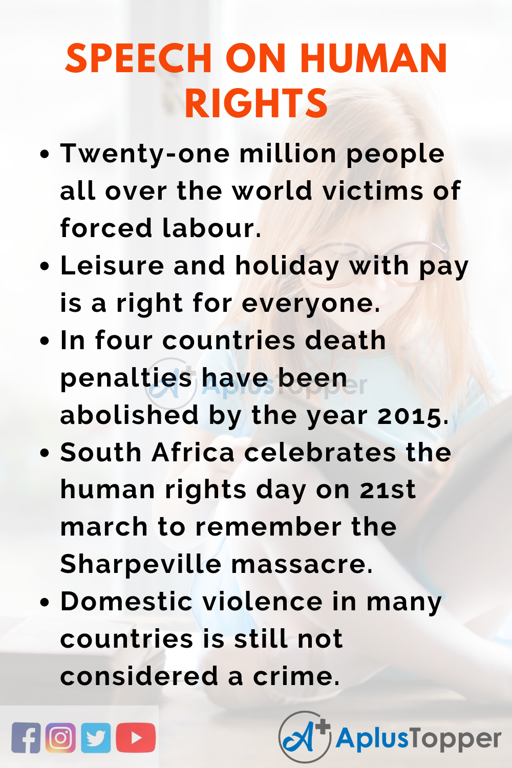 These speeches will be helpful for students and the public to understand the importance and significance of human rights. These speeches will also emphasize on the rights of every individual.