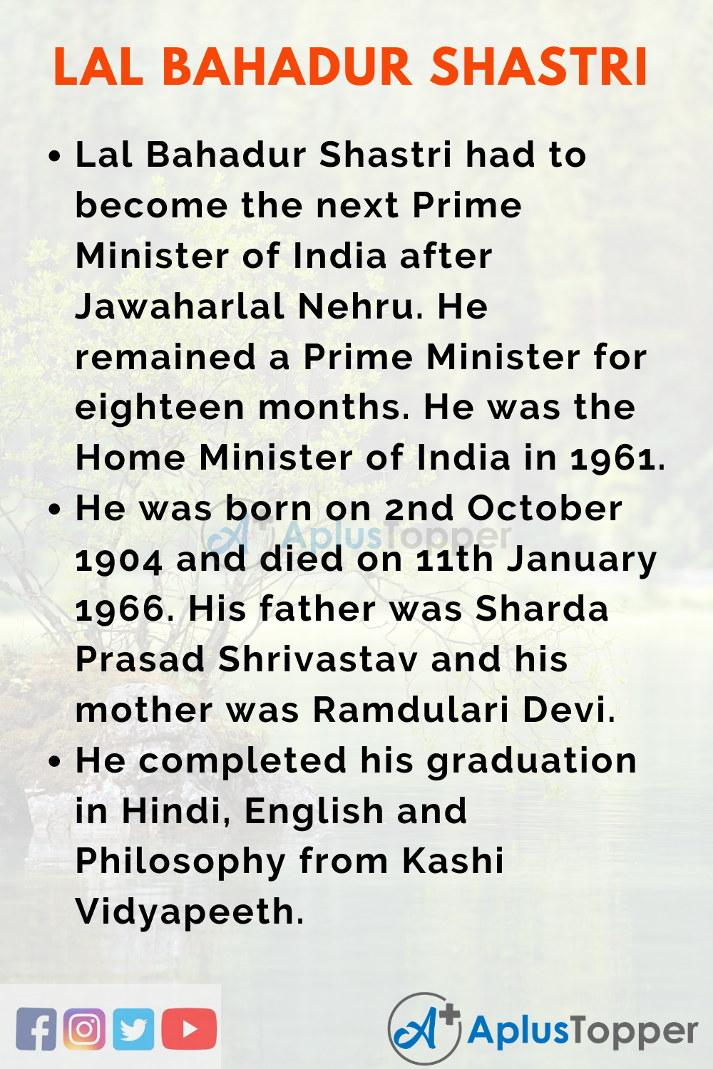 FAQ’s On Speech On Lal Bahadur Shastri