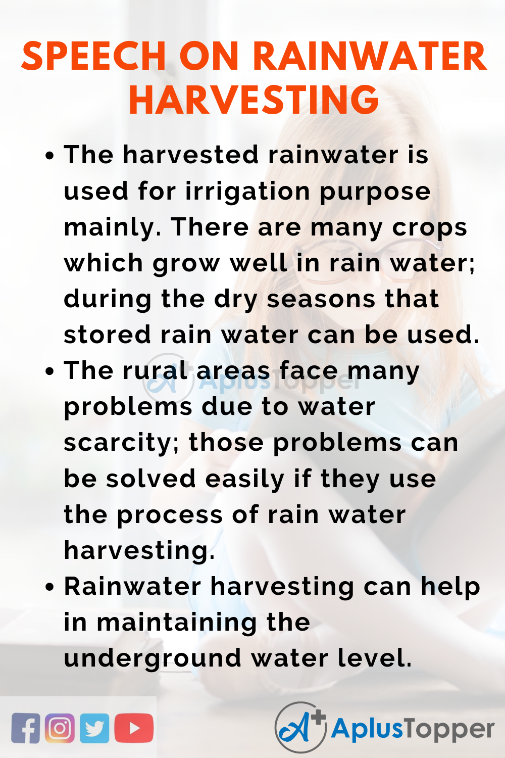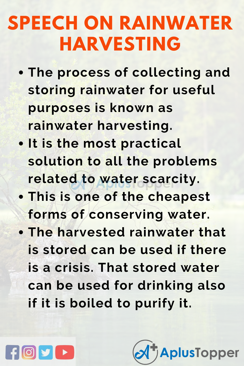 Long And Short Speeches On Rainwater Harvesting for Kids And Students in English