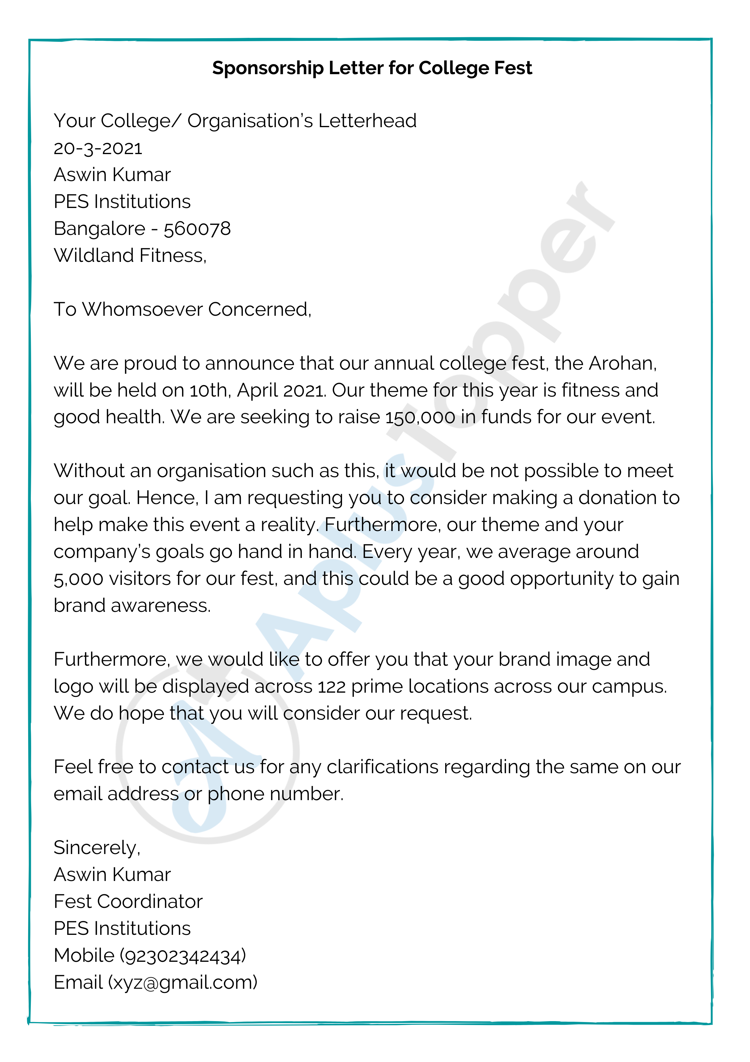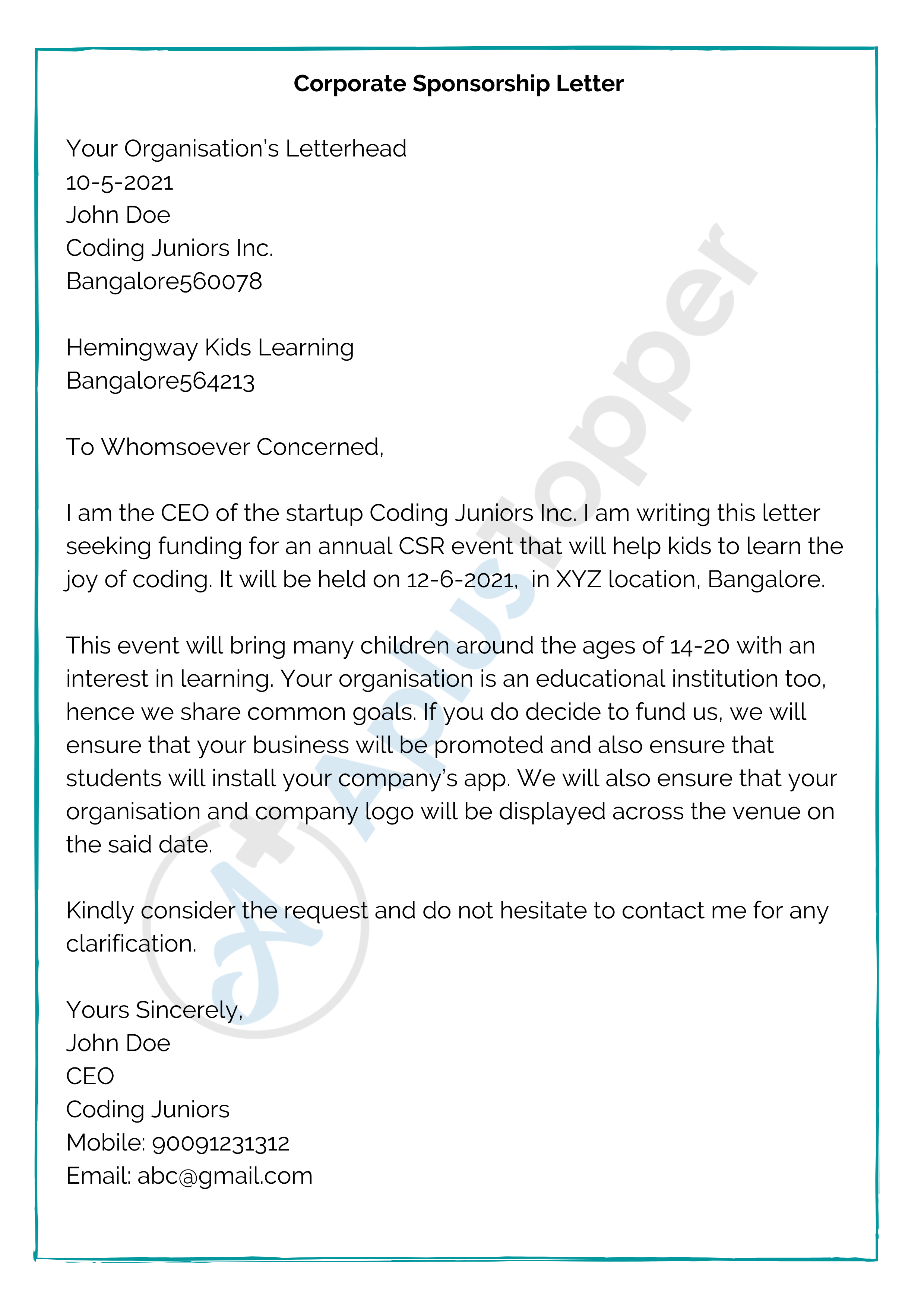 Sponsorship letters are used across various institutions and scenarios. Some organisations may also seek to fulfill their CSR duties through these community or event sponsorships.