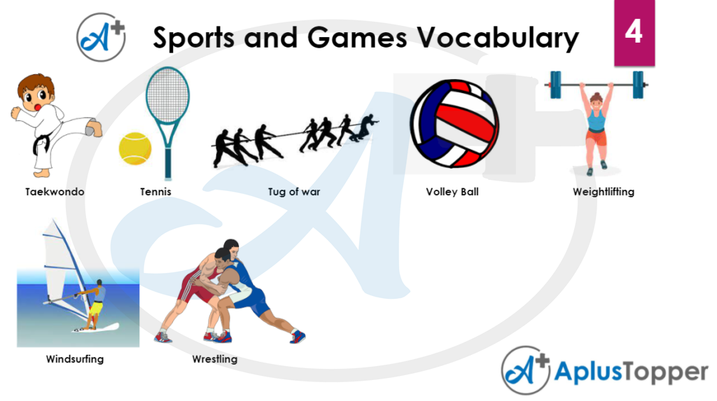 The Pictures of Sports and Games will help you to remember the names of the games for a long time. The list of various types of sports and games in English words is given below. Some of them are Badminton, Cricket, Chess, Tug of war, Hockey, Ice Skating, Martial arts, etc.
