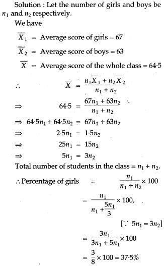 Question 7. The average score of girls in class X examination in school is 67 and that of boys is 63. The average score for the whole class is 64.5. Find the percentage of girls and boys in the class.