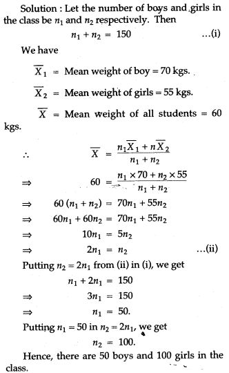 Question 8. The mean weight of 150 students in a certain class is 60 kgs. The mean weight of boys in the class is 70 kg and that of girls is 55 kgs. Find the number of boys and the number of girls in the class.