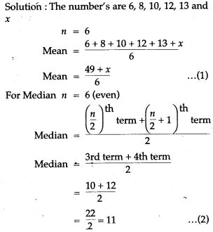 Question 9. The numbers 6, 8, 10, 12, 13, and x are arranged in an ascending order. If the mean of the observations is equal to the median, find the value of x.