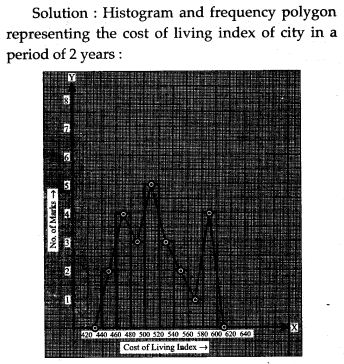 Question 13. Draw a histogram and frequency polygon to represent the following data (on the same scale) which shows the monthly cost of living index of a city in a period of 2 years: