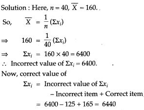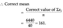 Question 4. The mean of 40 observations was 160. It was detected on rechecking that the value of 165 was wrongly copied as 125 for computation of mean. Find the correct mean.