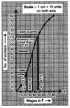 Question 12. Using a graph paper, drawn an Ogive for the following distribution which shows a record of the weight in kilograms of 200 students.