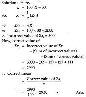 Question 5. The mean of 100 items was found to be 30. If at the time of calculation two items were wrongly taken as 32 and 12 instead of 23 and 11, find the correct mean.