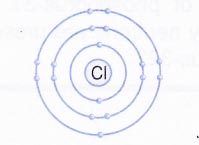 The 17 electrons are arranged as two in the first shell, eight in the second shell and the remaining seven in the third shell.