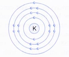 The 19 electrons are arranged as two in the first shell, eight in the second shell, eight in the third shell and the remaining one in the fourth shell.