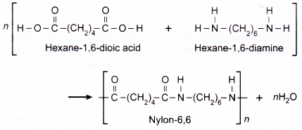 (d) Nylon-6,6 is manufactured from polymerisation of hexane-1,6-diamine and hexane-1,6-dioc acid.