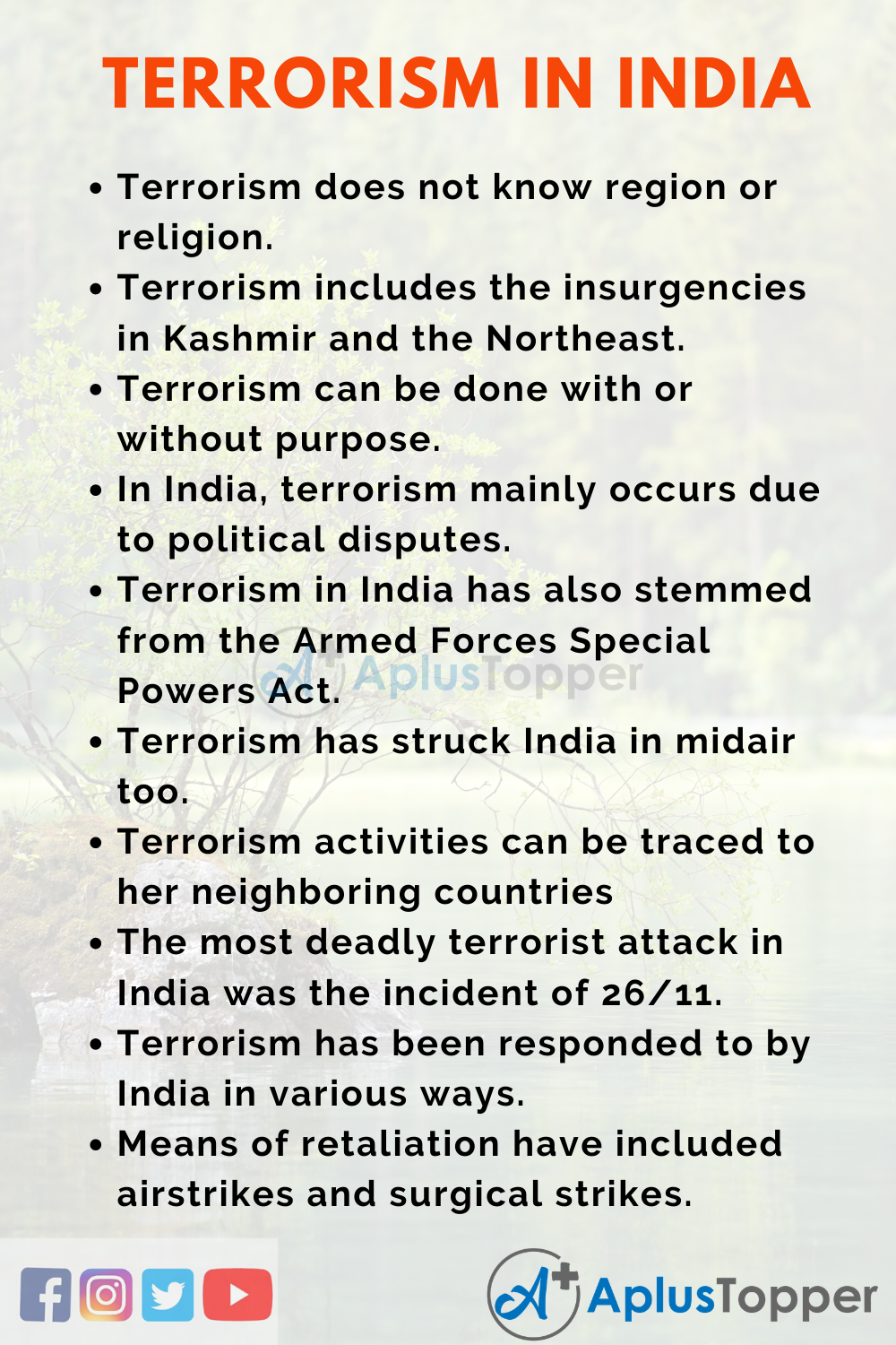 - Terrorism in India has also stemmed from the Armed Forces Special Powers Act.