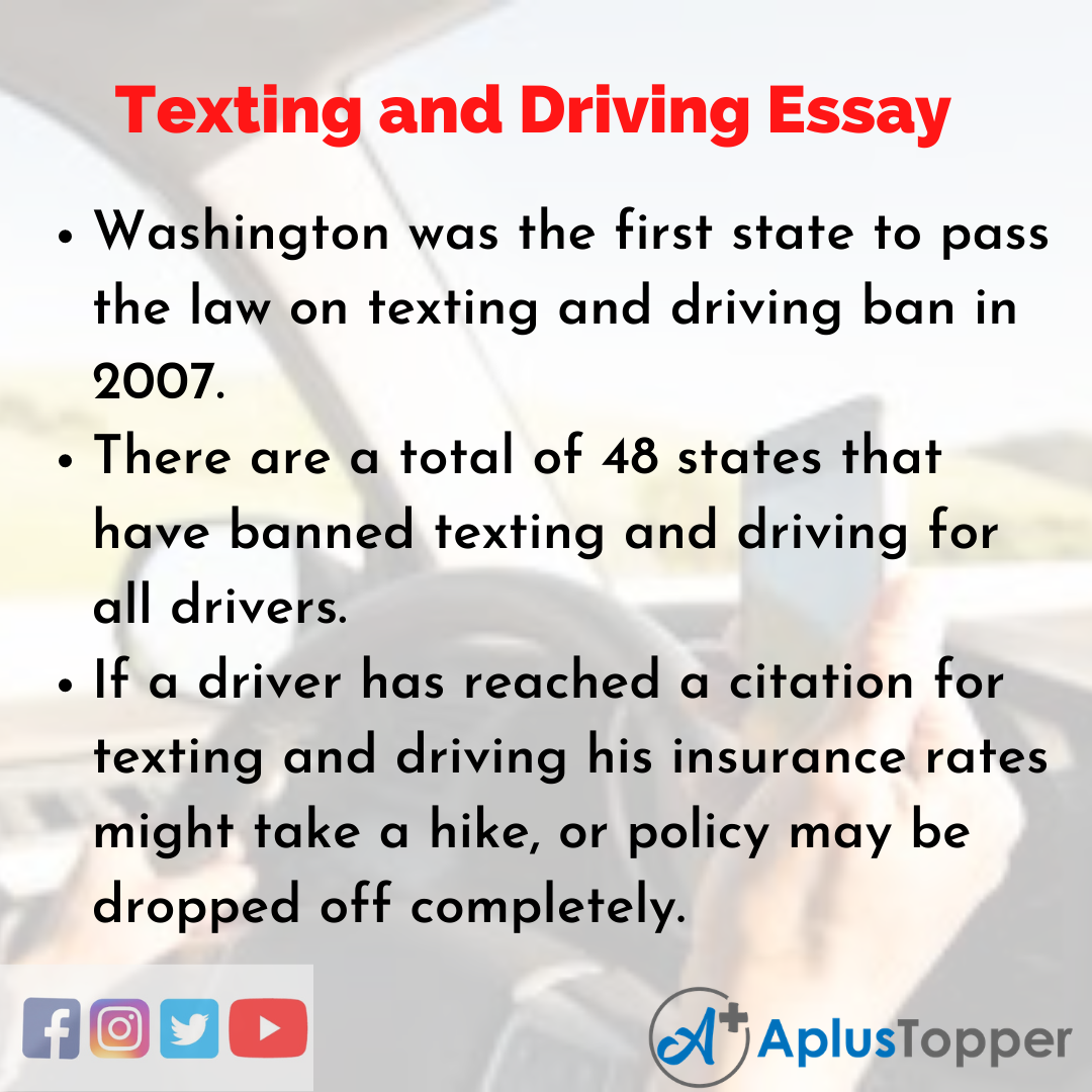 Long Essay on Texting and Driving is usually given to classes 7, 8, 9, and 10.