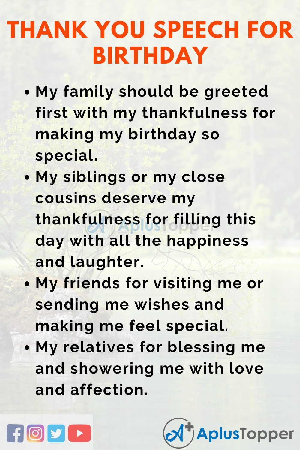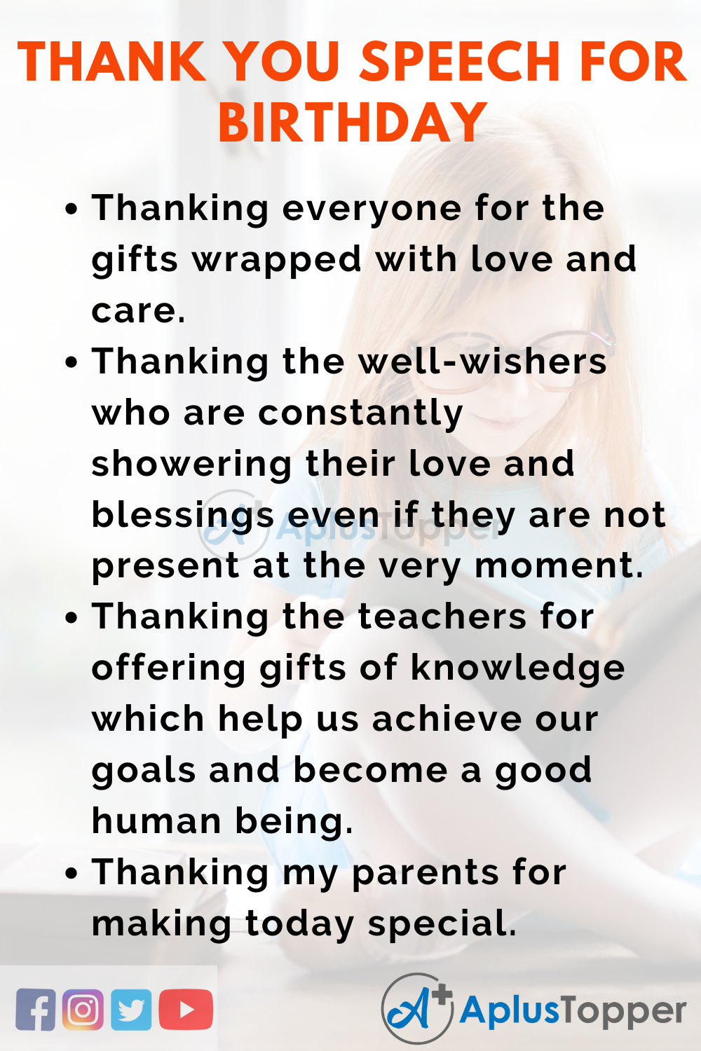 A Long Thank You Speech for Birthday is helpful to students of classes 7, 8, 9, 10. 11 and 12. A Short Thank You Speech for Birthday is helpful to students of classes 1, 2, 3, 4, 5 and 6.