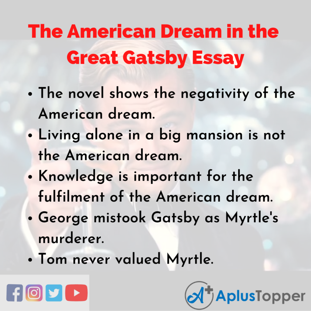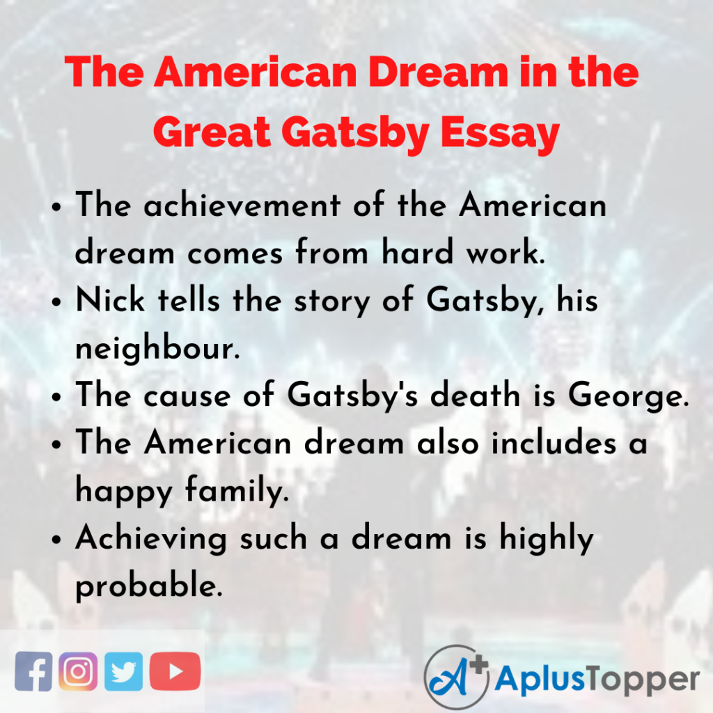 Short Essay on the American Dream in the Great Gatsby 150 Words in English