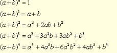 When binomial expressions are expanded, is there any type of pattern developing which might help us expand more quickly? Consider the following expansions: