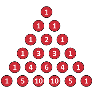 (The two outside edges of the triangle are comprised of ones. The other terms are each the sum of the two terms immediately above them in the triangle.)