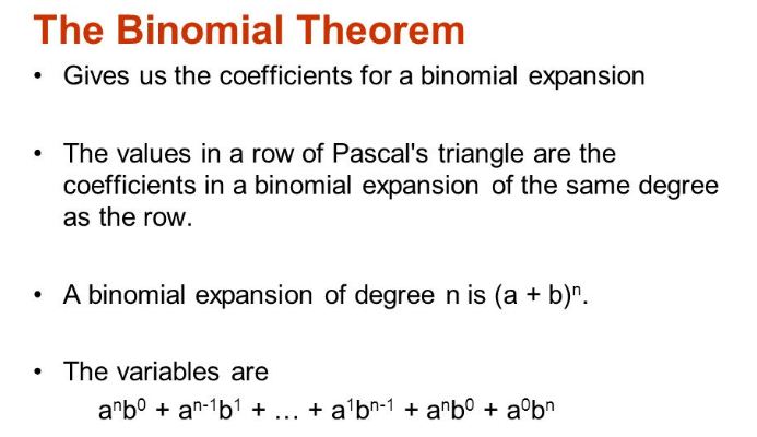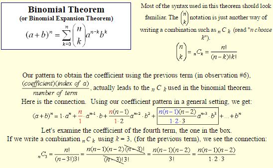 By pulling these observations together with some mathematical syntax, a theorem is formed relating to the expansion of binomial terms: