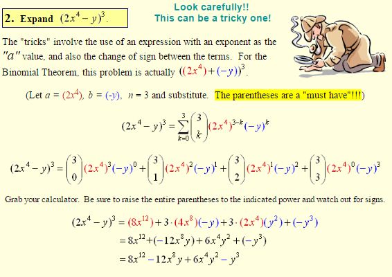 You are faced with the problem of expanding \((x+y)^10\) . What to do??? Do you really have to multiply this expression times itself 10 times?? That could take forever.